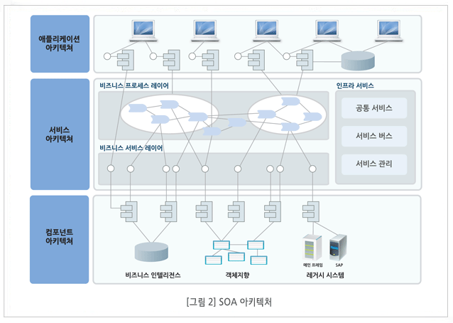 SOA Áï ¼ºñ½º ÁöÇâ ¾ÆÅ°ÅØÃ³(Service Oriented Architecture) ÀÇ °³³äÀº ±â¾÷ ³» ¿©·¯ ½Ã½ºÅÛ¿¡ ºÐ»êµÇ¾î ÀÖ´Â ºñÁî ´Ï½º ¼ºñ½º(Business Service)¸¦ ÇØÃ¼ÇÏ¿©, ¿©·¯ ½Ã½ºÅÛ¿¡¼ °øÀ¯ÇÒ ¼ö ÀÖ´Â °øÀ¯ ºñÁî´Ï½º ¼ºñ½º(Shared Business